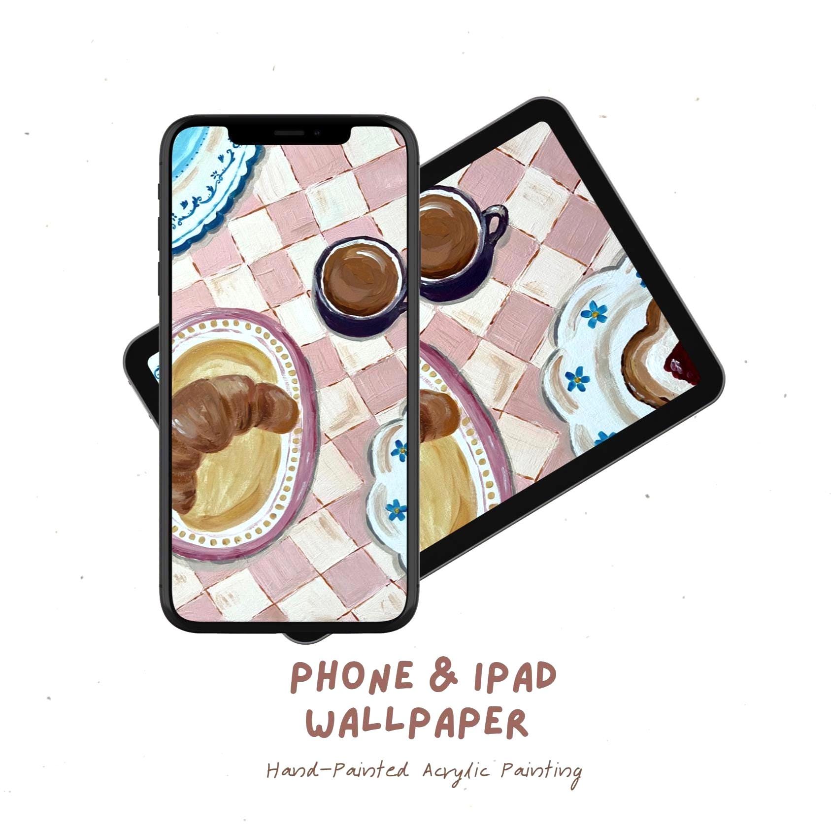 ✨ Why you’ll love it: ✦ Original hand-painted acrylic artwork ✦ Cozy breakfast scene with croissant & coffee ✦ Soft pastel colors & pink gingham pattern ✦ Calm, warm and aesthetic mood ✦ Ideal for phone & iPad wallpapers ✦ Makes your screen feel cozy, creative & comforting
